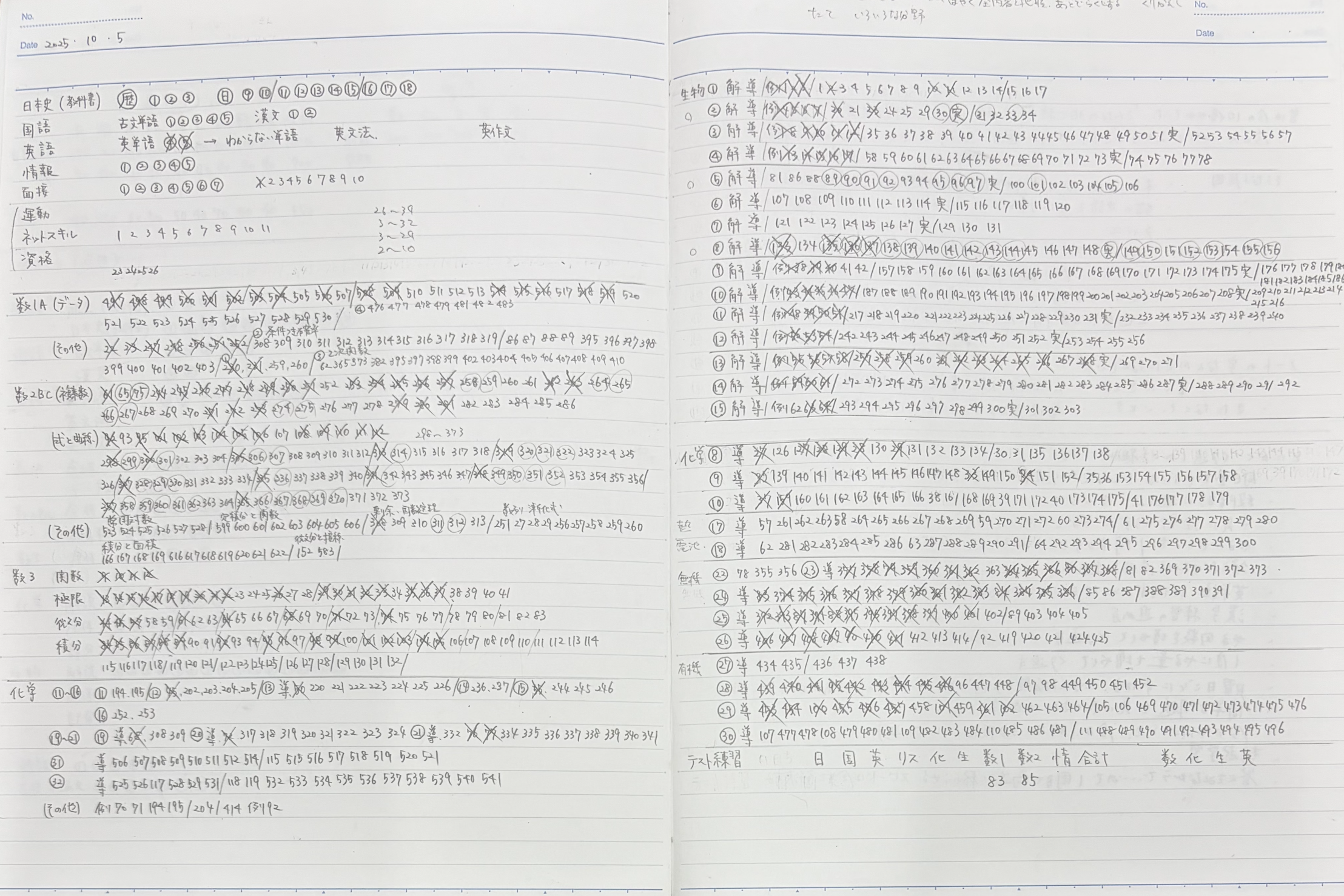 ・教科書を1日50-100ページ、もしくは1章を読むことを目標に日々回し続けます。もしくはただ読むことにこだわらず知識をまとめたり覚え方を工夫したりして覚える努力をします。ノートにまとめるのも手段としはいいですが、重要なのはノートをまとめることではなく昨日よりも覚えたかどうかです。覚えるためにまとめたり工夫したことはノートではなく教科書のなかにメモをとるようにしてください。